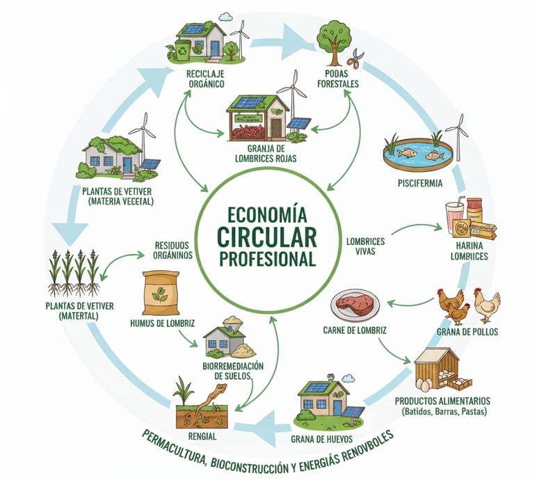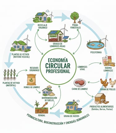 Les presento el proyecto que revolucionará la alimentación del futuro, beneficiará los suelos y demostrará que ecología y rentabilidad van de la mano. La creación de un conjunto de empresas relacionadas entre sí para obtener una simbiosis significativa, fácil de gestionar y con verdaderas consecuencias para el sistema, una idea que confío ofrecerá múltiples beneficios para la salud animal, humana y la del planeta. Con una filosofía ecológica real, utilización de energías renovables, bio construcción y diseño de un complejo que favorezca la biodiversidad del terreno.
