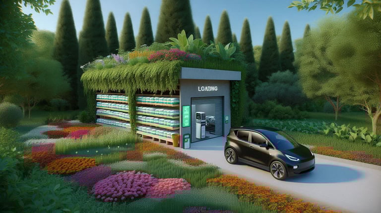 Zona de Carga/Descarga: Espacio logístico junto al camino principal para recepción de residuos y salida de producto envasado.