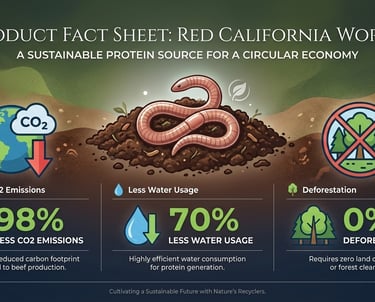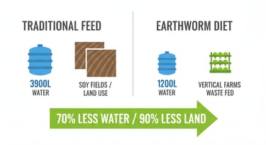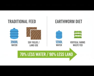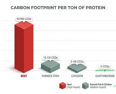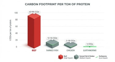 Eficiencia de la Lombriz: Si sustituyéramos solo el 10% del consumo de carne de vaca por harina de lombriz (en piensos o alimentación procesada), ahorraríamos el equivalente a las emisiones de millones de coches al año.