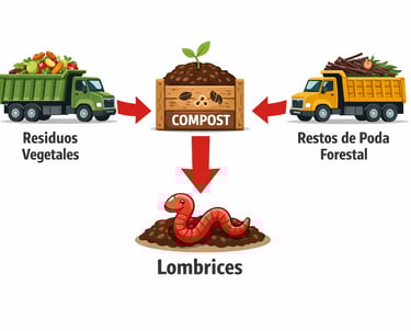 Una empresa que se dedique a la recepción y reciclaje de todo tipo de residuo vegetal proveniente de podas forestales, municipales, empresas de alimentación varias, restos contaminantes como algas invasoras o los restos de la producción del aceite de oliva. Sólo vegetal para saltarnos la normativa SANDACH.